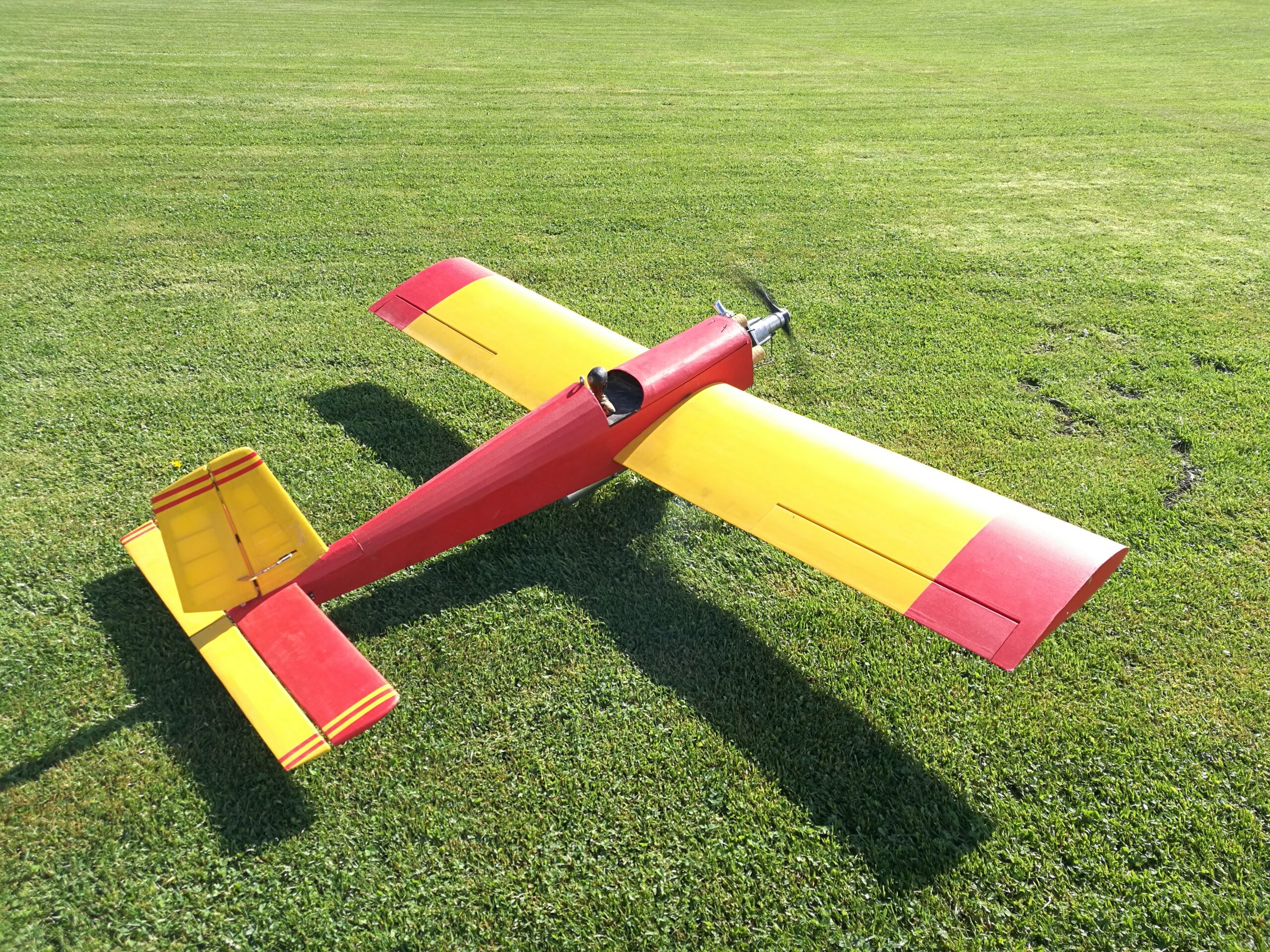Auf dem Fluglager in Schalkstetten gab es den lang ersehnten Erstflug des Akamodell-Schleppers Powergeier!Der Rumpf wurde noch vor dem Werkstatt-Brand 1999 gebaut. Lange Projektlaufzeit 🙂